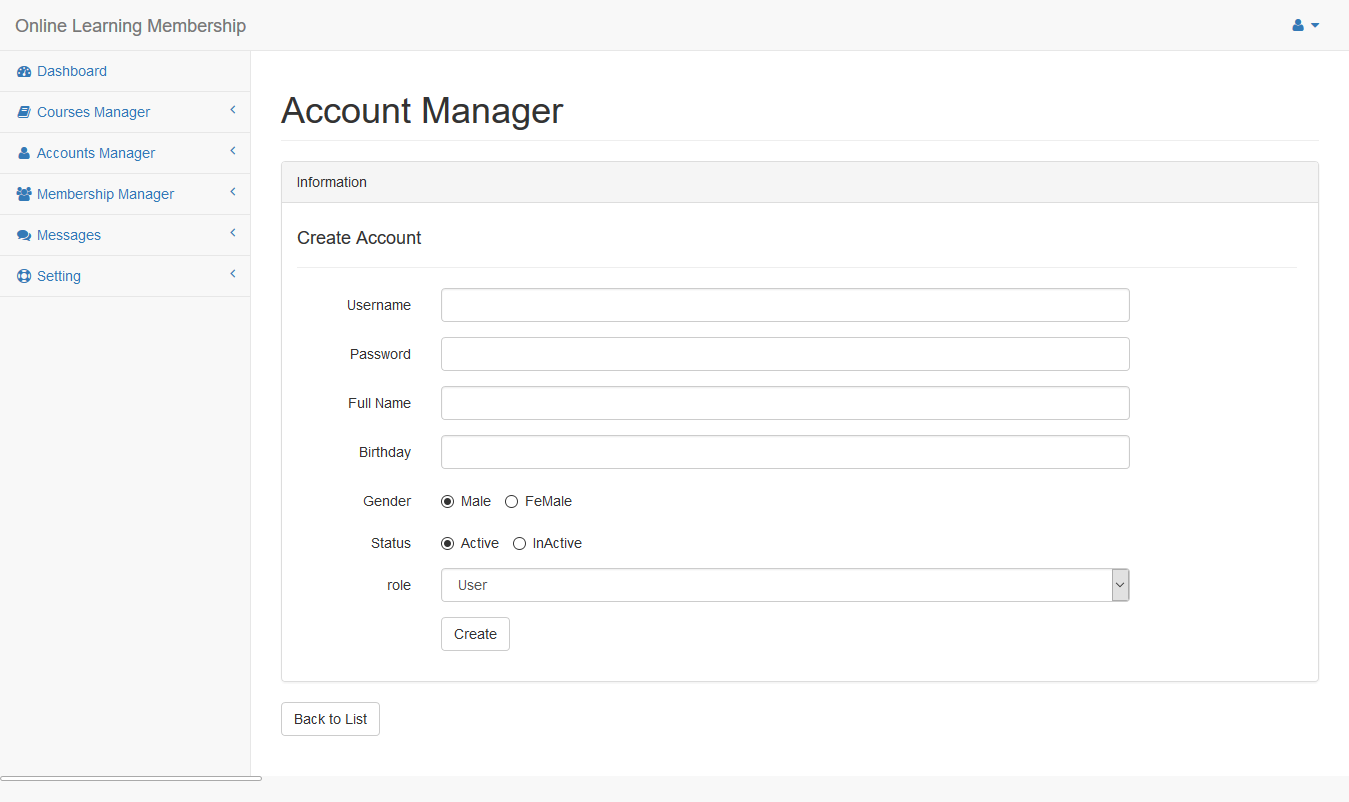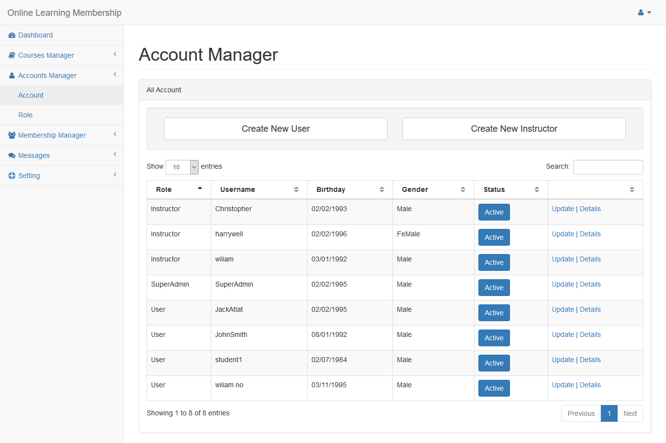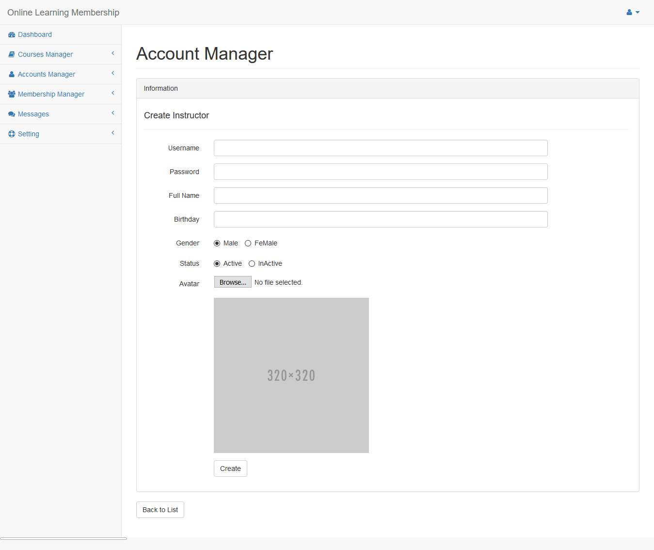 Click Create New Instructor button to add new instructor.
