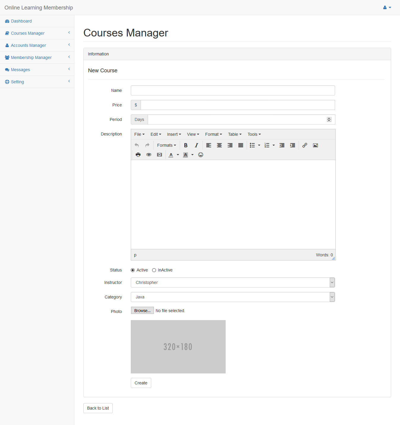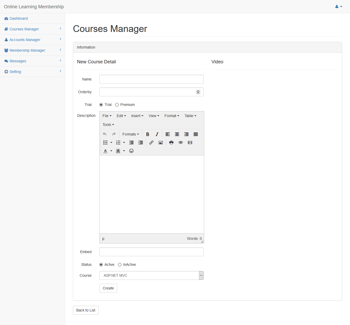 Click Course menu in the left side
