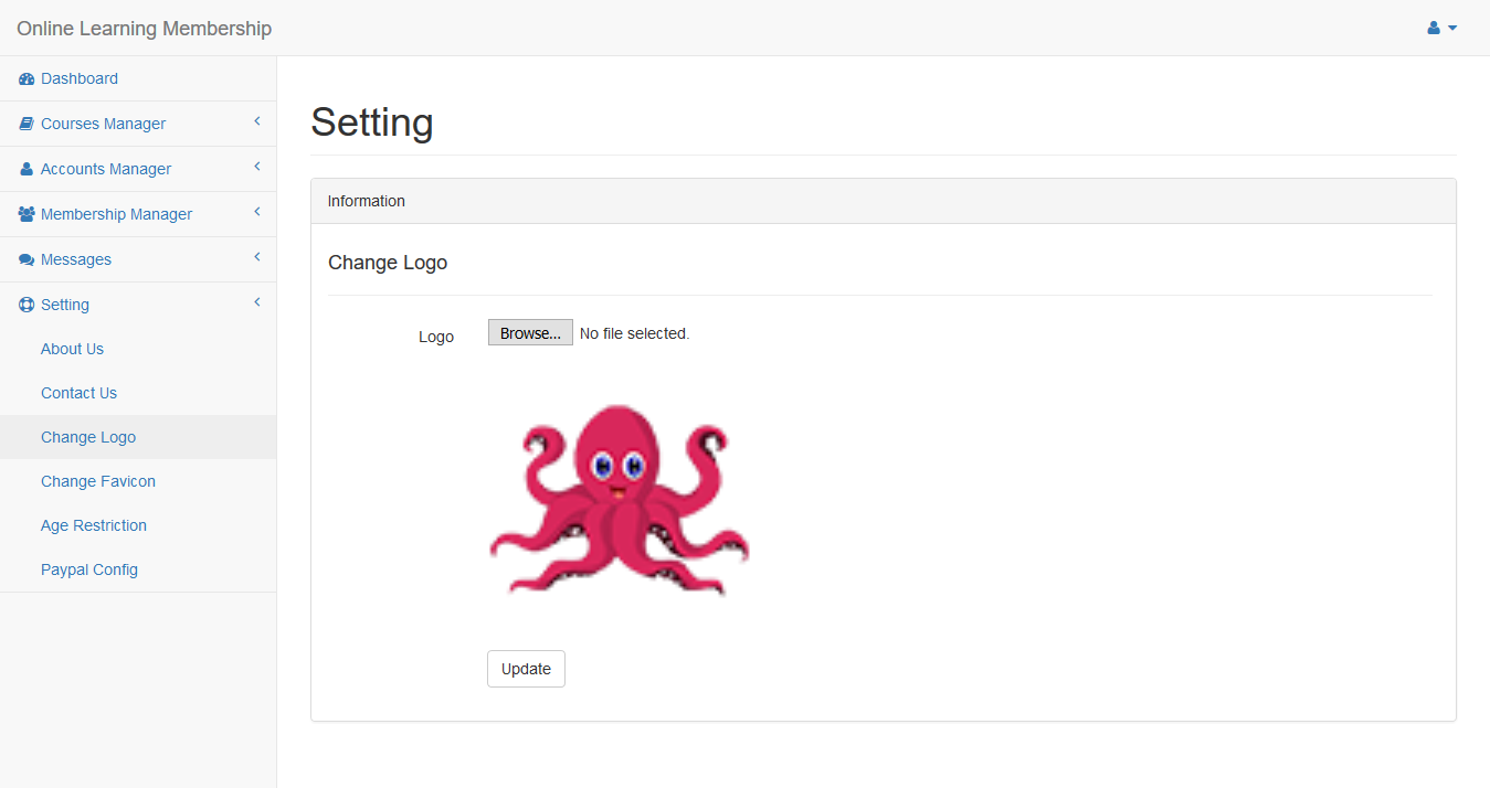 Click Setting/Change Logo menu in the left side to change logo of page