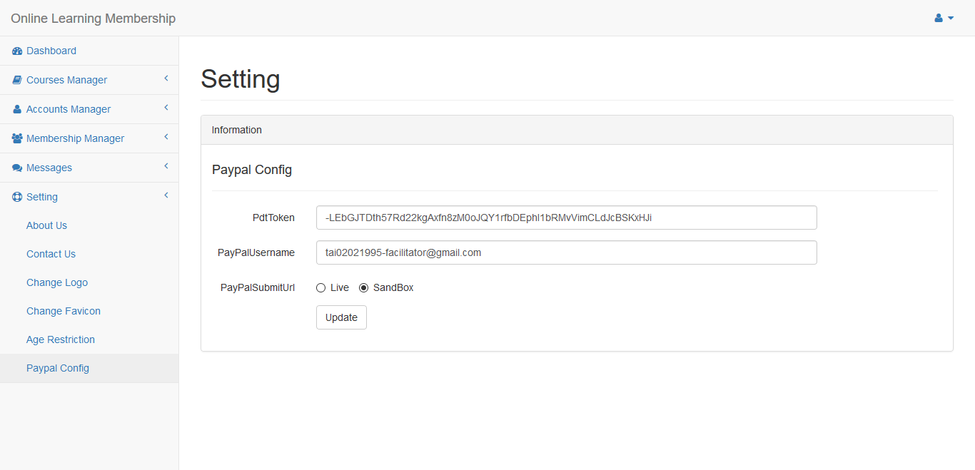 Click Setting/PayPal menu in the left side